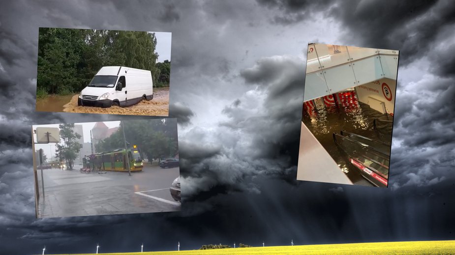 Poza wieloma drogami, zalane są m.in. Pogoda wyrządziła wiele szkód w mieście. Zabezpieczają dojazd i akcję służb ratunkowych. Schody ruchome na dworcu poznań główny już działają. Burze mogą przynieść chwilami intensywne opady deszczu, silniejszy wiatr oraz grad.